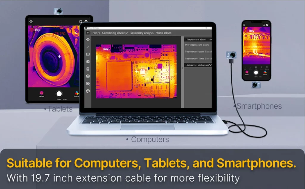 Die InfiRay P2 Pro funktioniert derzeit unter Windows als Infrarotkamera und scheint mit der Software von Topdon kompatibel zu sein, was ein großer Vorteil ist. Darüber hinaus wird sie mit einem USB-C-Verlängerungskabel geliefert, sodass Benutzer die Infrarotkamera unabhängig vom angeschlossenen Gerät bewegen können.